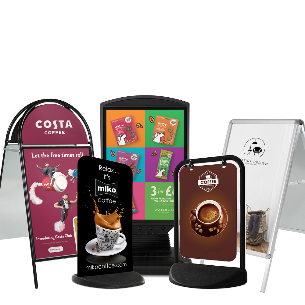 Pavement Signs Pavement Signs.Pavement signs & A-Boards designed for indoor or outdoor use. These professional pavement display signs are sure to give your customers a superb first impression. All our panel Pavement Signs include full colour prints to both sides